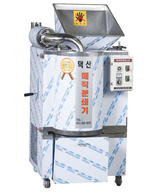 기존의 분쇄기와는 달리 물에 젖은 분쇄물도 처리가능하며 분쇄처리 속도가 기존의 분쇄기보다 10배이상 빠르게 처리가 됩니다. 고추장가루, 짬뽕용 고추가루, 다대기 등 롤러로 빻기 힘든 작업을 매직 분쇄기 한대면 단 1회 투입으로 모두 해결되며 입자 조절이 가능합니다. 쇠가루가 전혀 발생되지 않으며 색상이 제래식 롤러나 어떤 기계에서 가공한 고추가루보다 뛰어나 고추 그대로의 선명한 색상을 얻을 수 있습니다. 입자조절이 자유로우며 단단한 나무토막이나 솔잎, 뽕잎, 다시마, 미숫가루, 콩가루, 녹차가루, 대입차 등 어떤 분말도 미세한 분말로 만들수 있습니다.